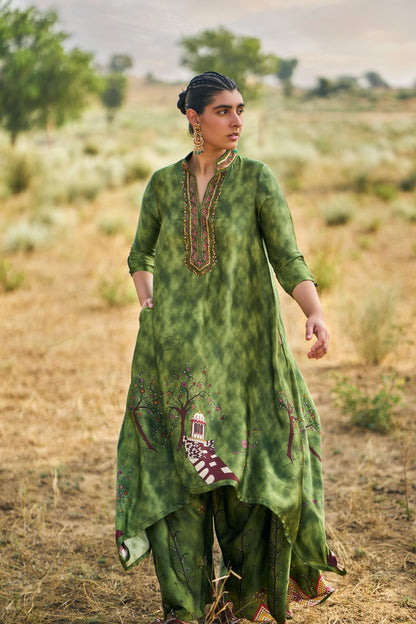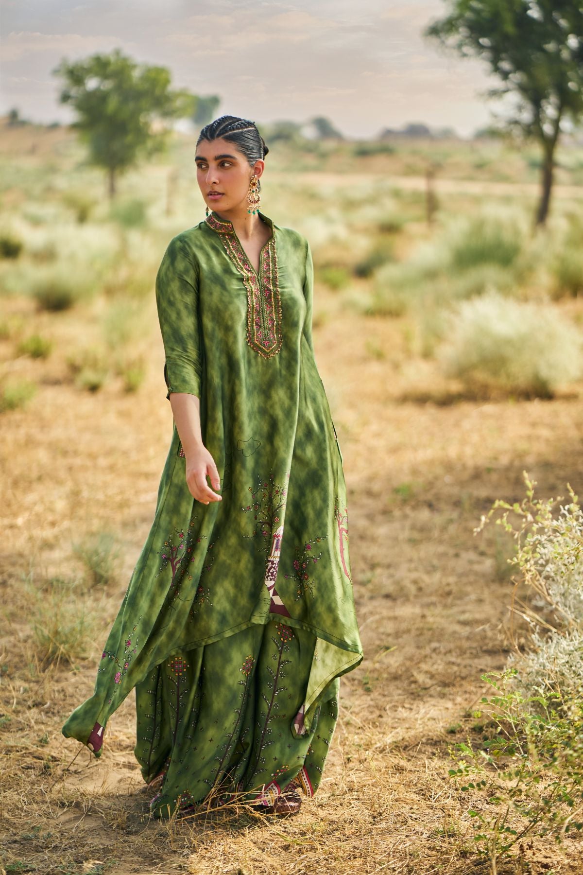 Combining The Elegance Of A Kurta With The Versatility Of A Kaftan, We Introduce Our New Kaftan Kurta Set, Designed To Flatter All Body Types. Paired With Wide Leg Pants, The Resham And Logo Coin Embroidery On The Neckline Adds The Right Amount Of Drama To The Ranthambhore Print Making It The Perfect Pick For The Festive Season Ahead.