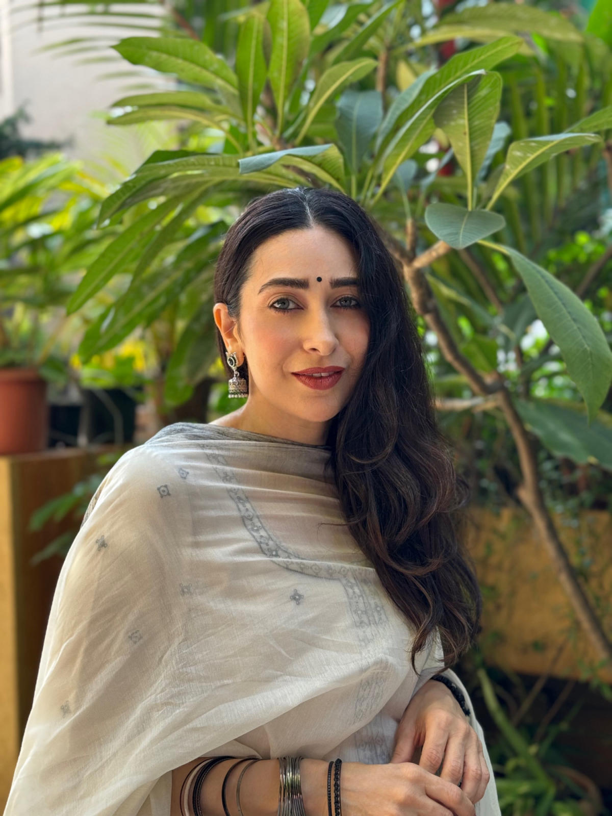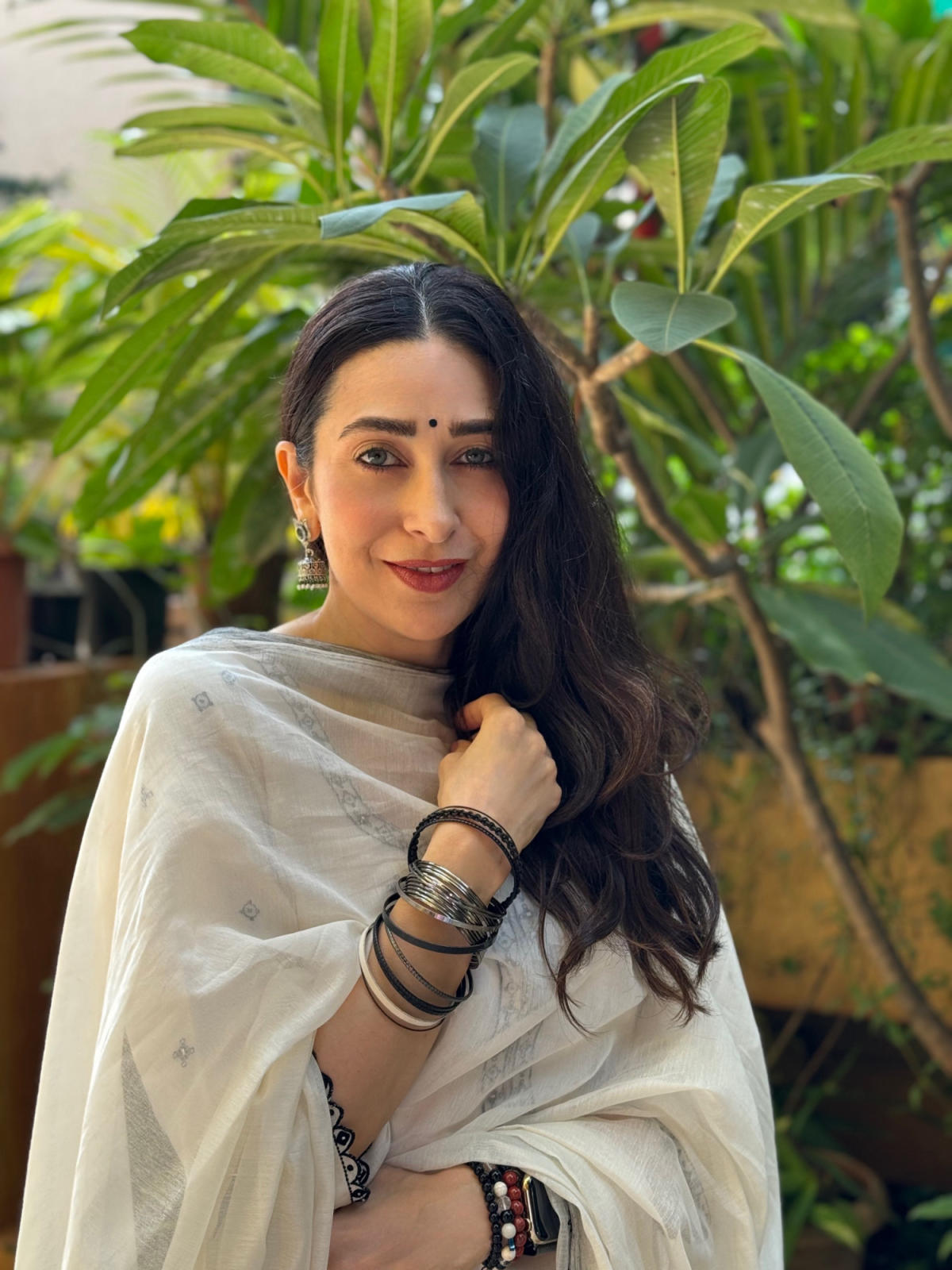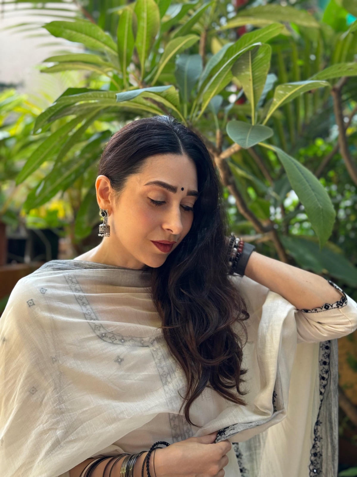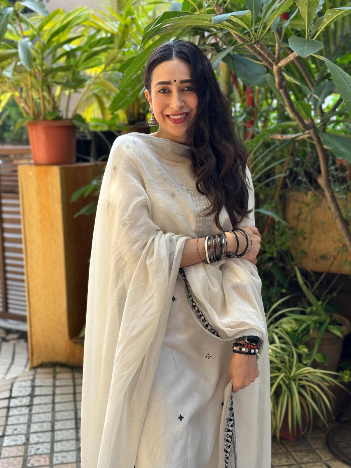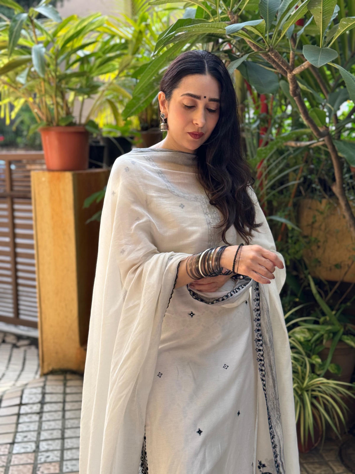 Ivory Resham and mirror work kurta paired with hand block printed pants and dupatta