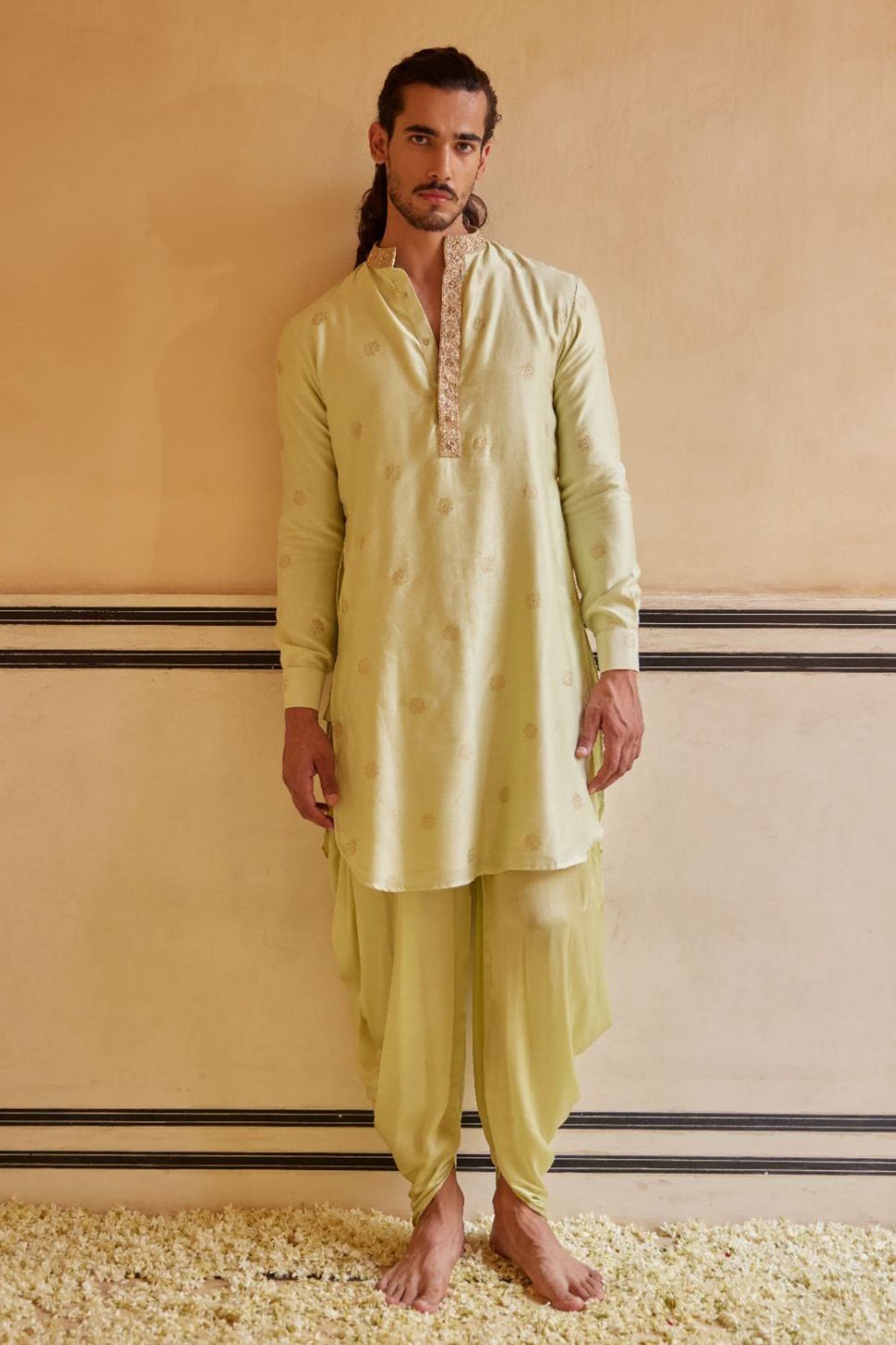 Mint Kurta Embroidered With Resham & Coin Paired With Pants.