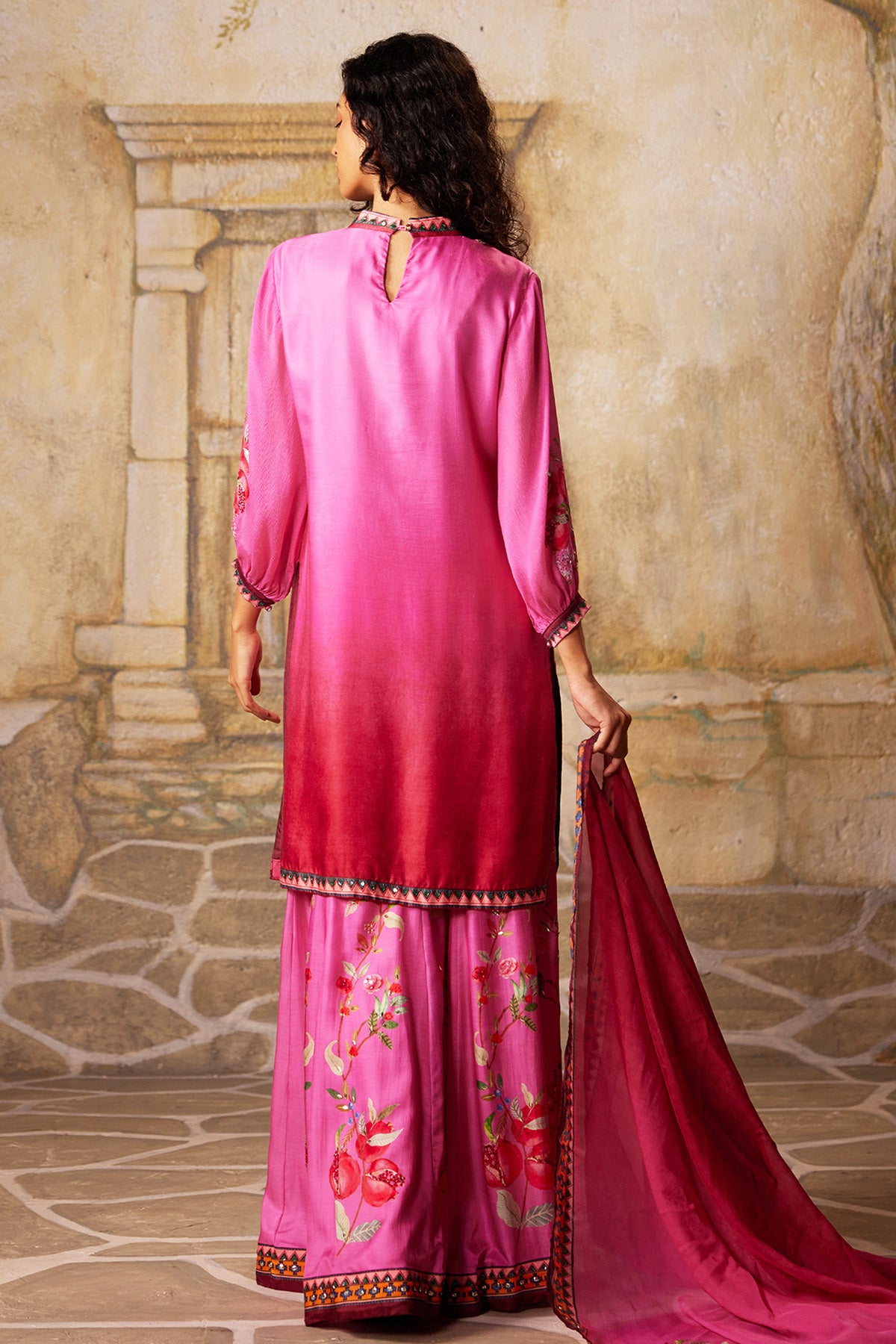 Yellow Printed Sharara Set with Embroidery Detailing Effortless Easyflowing Sharara and Printed Organza Dupatta