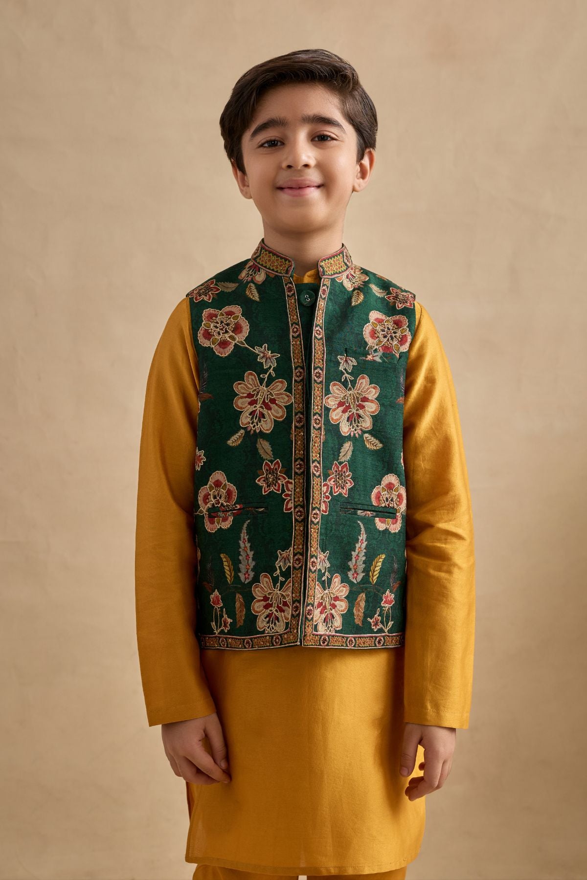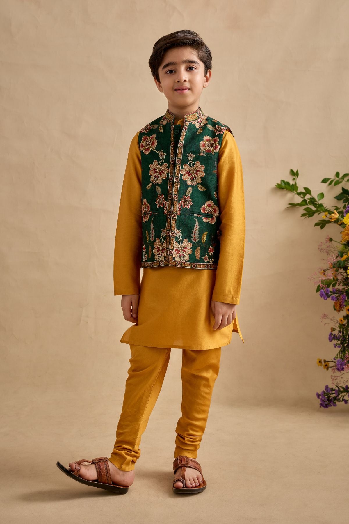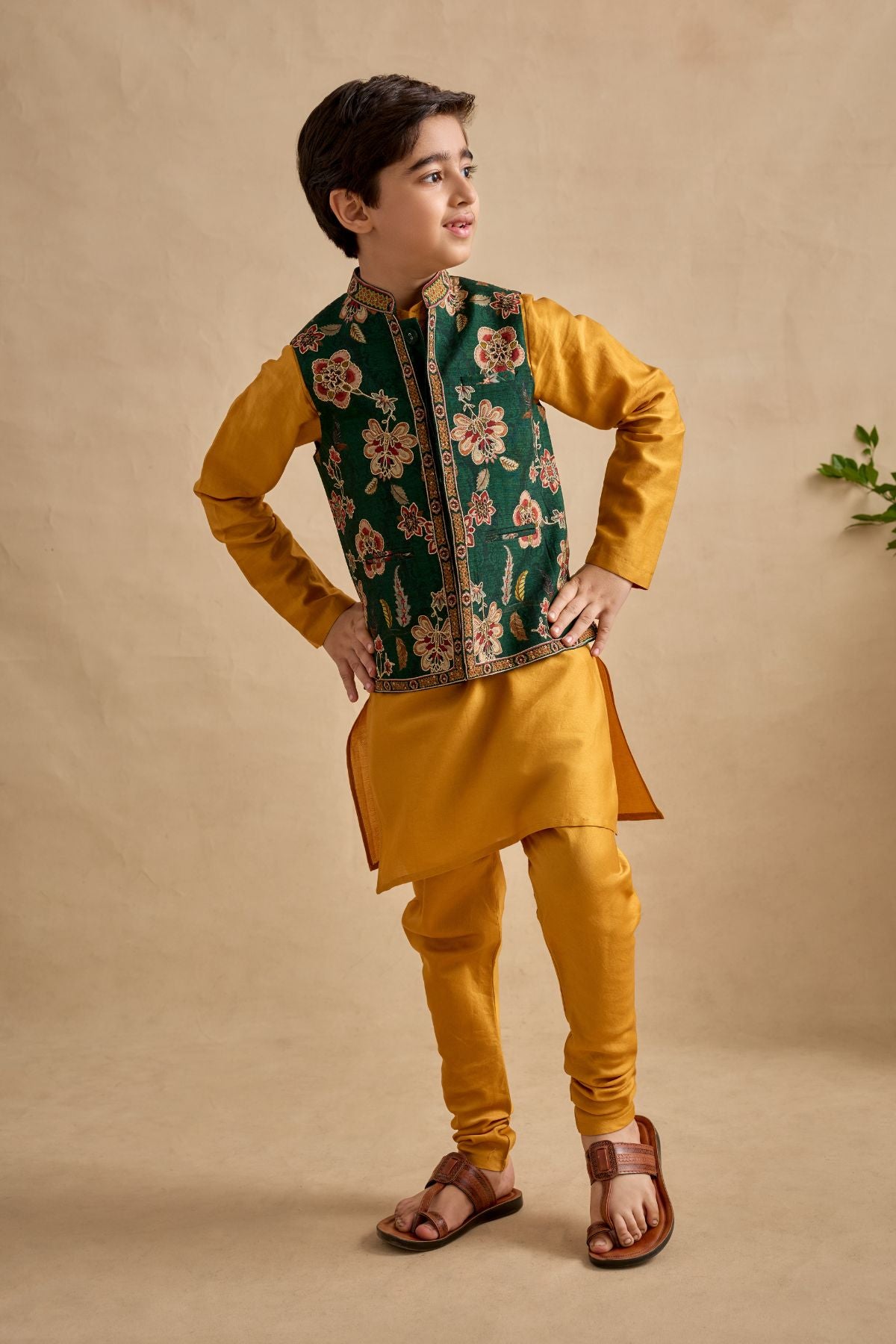 Colour: Bandi - Bottle Green , Kurta /churidar - Musturd