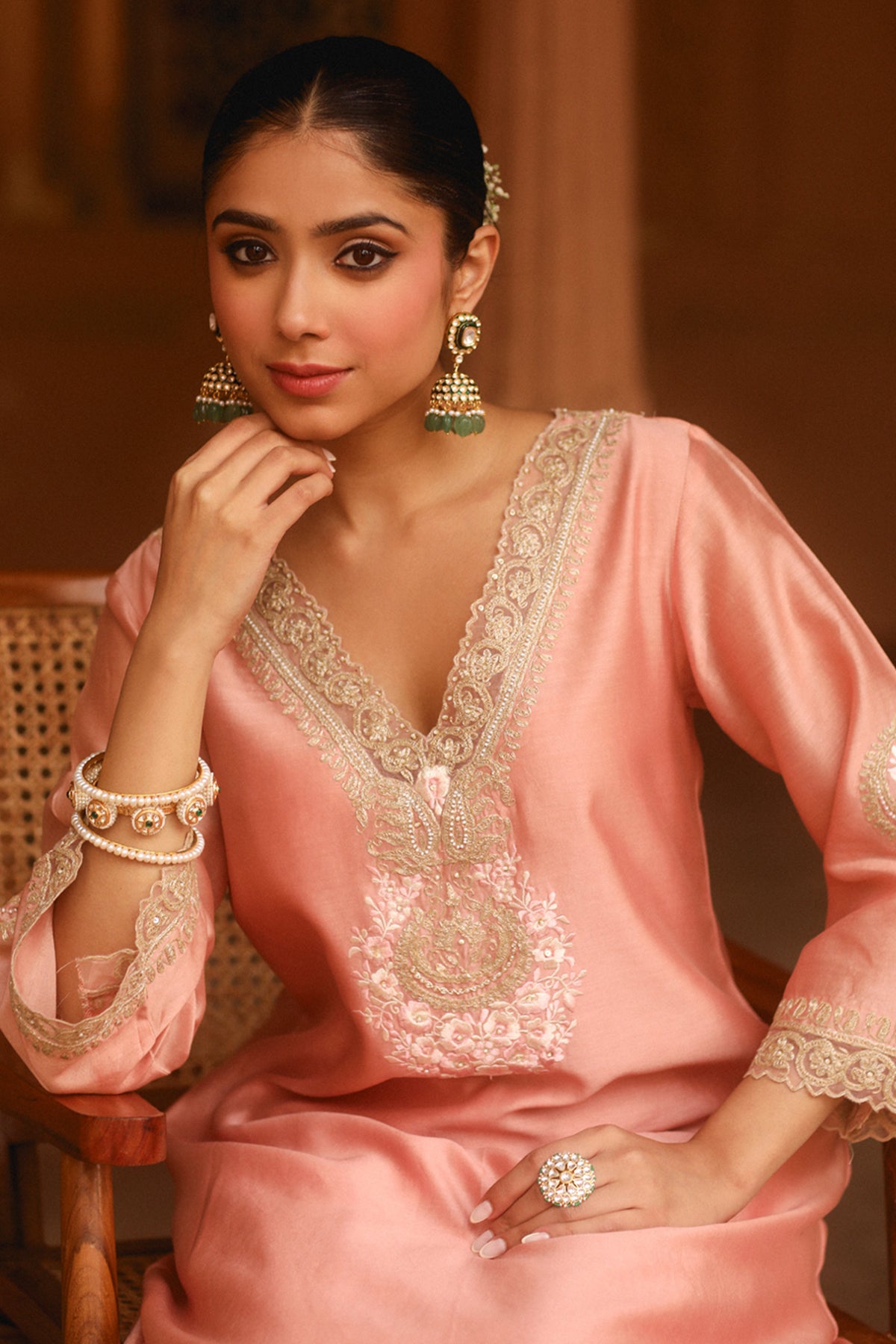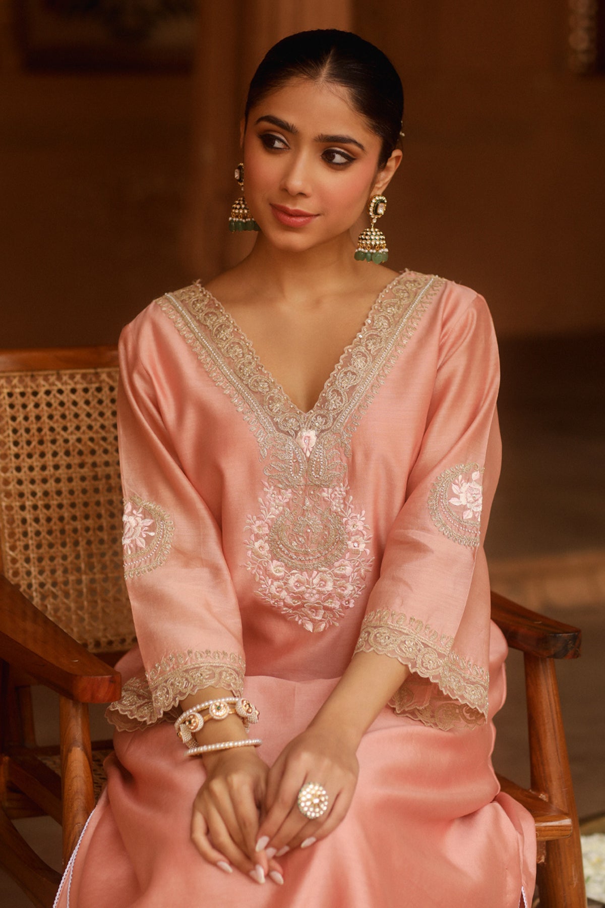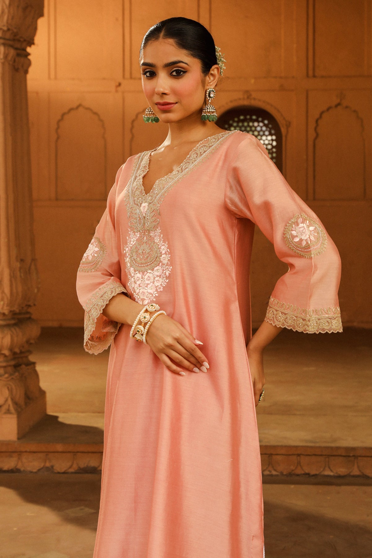 Composition: Kurta - Silk Chanderi; Bottom - Satin Silk.