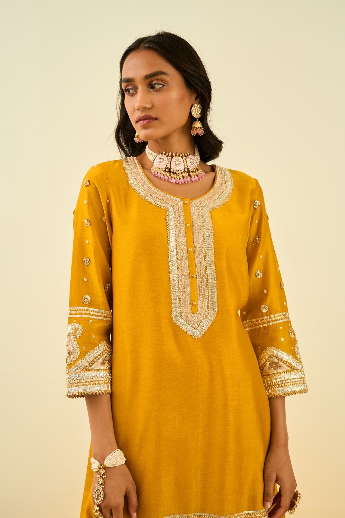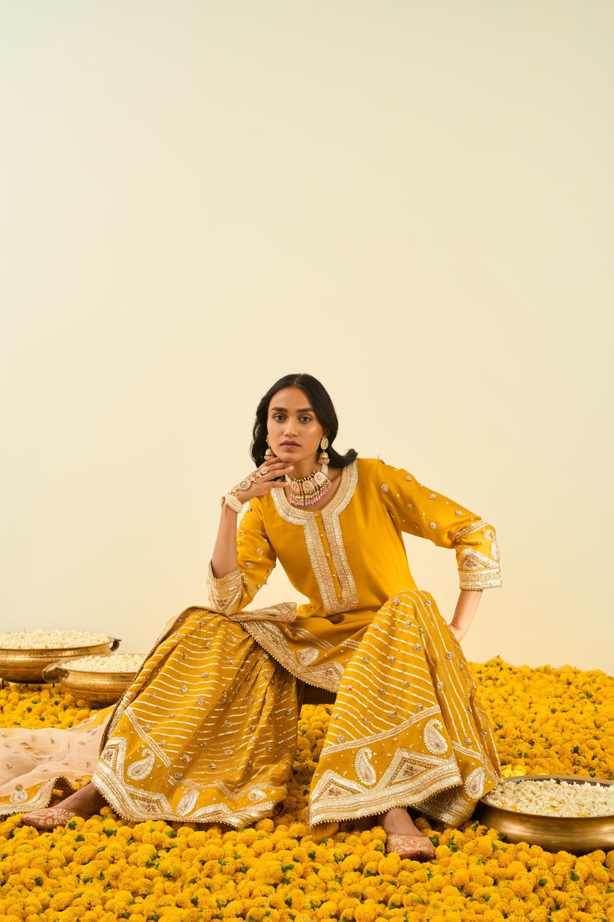 Shafna- Glaze Mustard short kurta with garara and dupatta