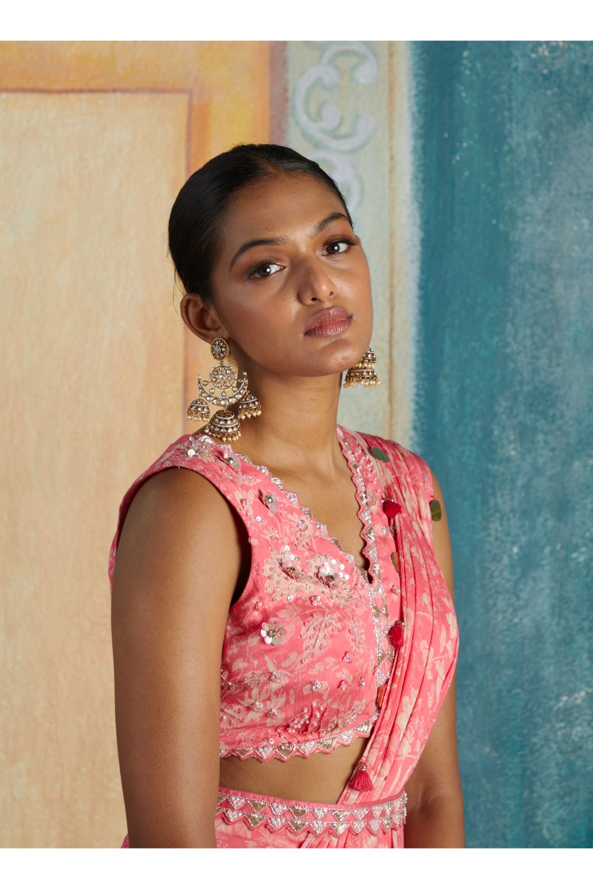 Pink Printed Draped Saree