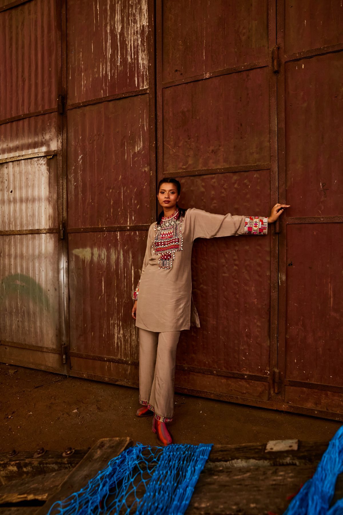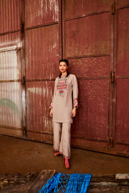 Grey Embroidered Kurta Set