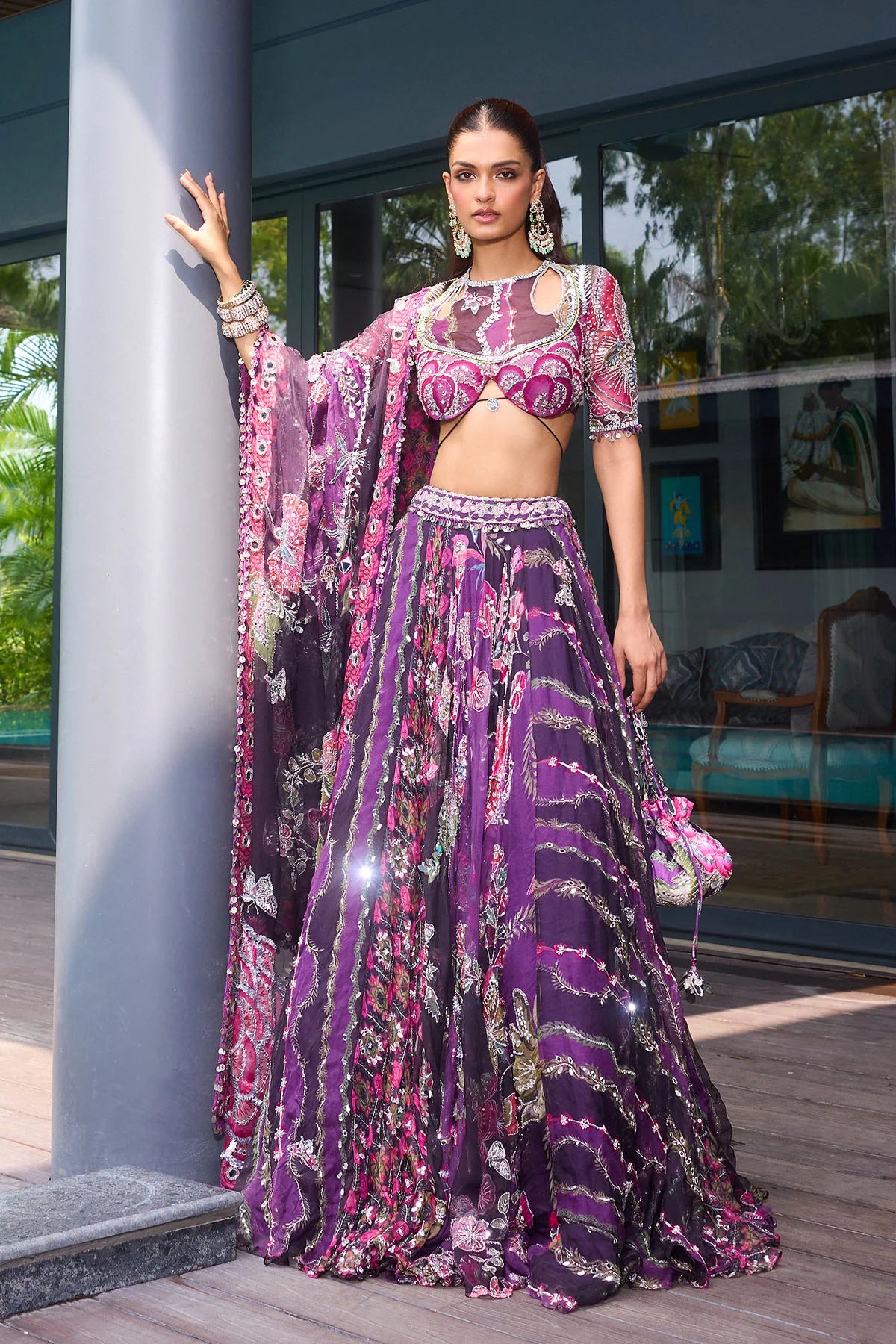 Embroidered Multi Panelled Lehenga , Signature Mm Blouse with Heavy Odhani