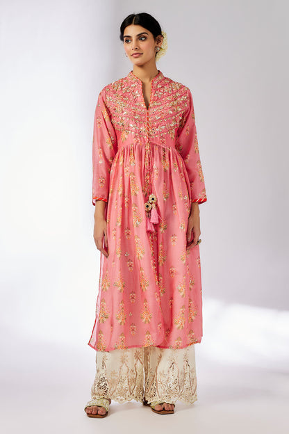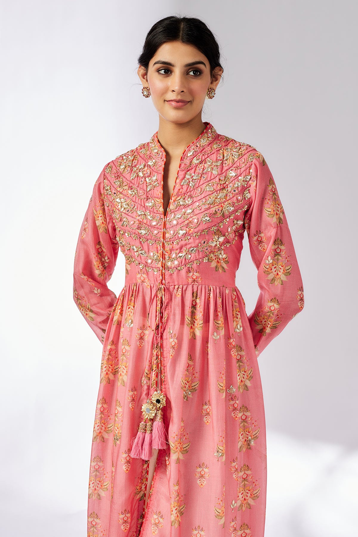 This Smart, Contemporary Collection Mixes A Strong Floral Print, All Delicately Enhanced Embroidery around the Neck . Add Shimmer And A Richness To This Pretty Ensemble. Long Sleeved Tunic Is Easy To Carry And Can Be Worn On Any Occasion.