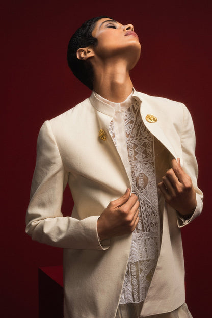 Details: A Kora structured bandi in handwoven cotton with an elegant placement of our Fish in the pond charm on the front, This bandi is an elevated basic that can take your look from day to night.