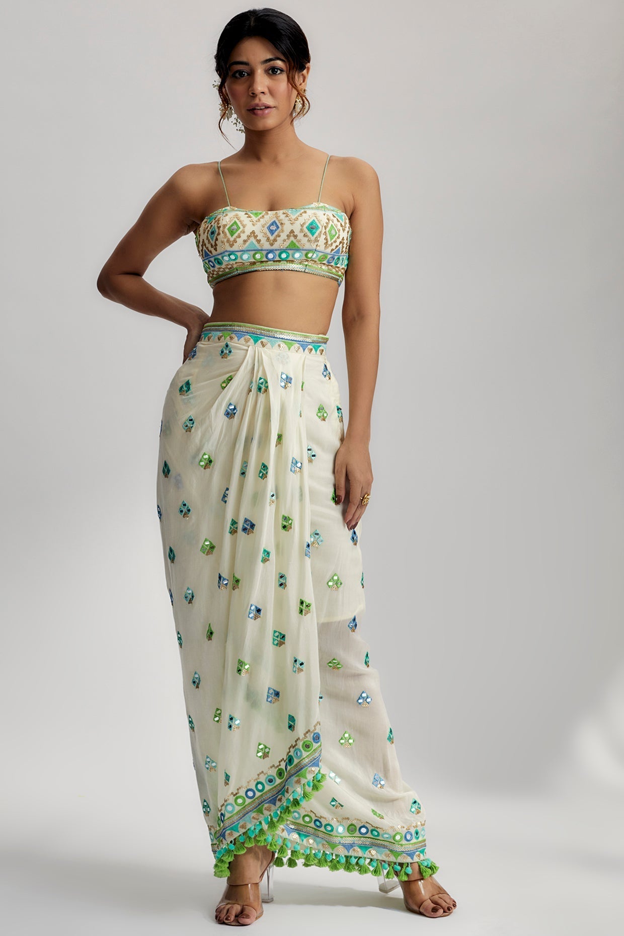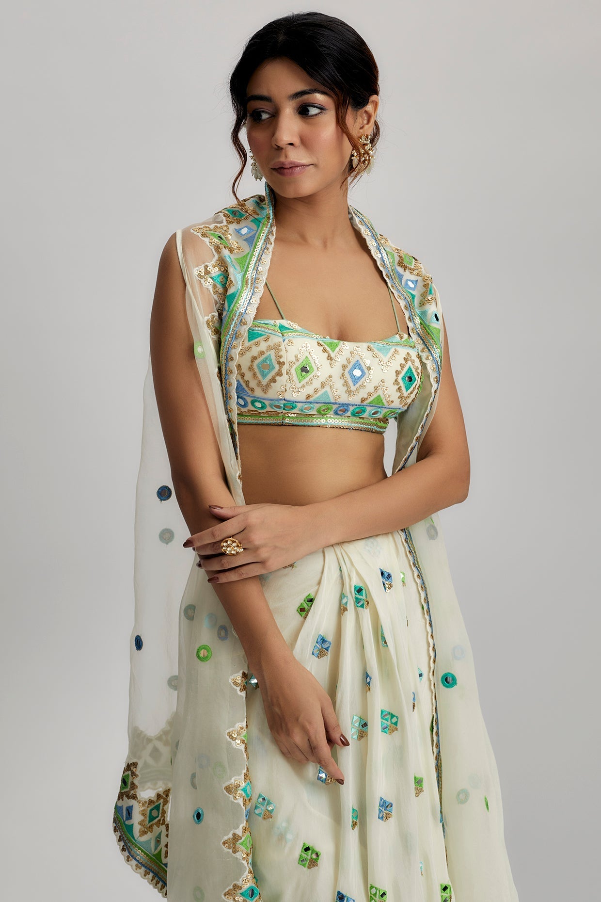 - Fabric Composition: Cape - Organza, Skirt - Georgette, Blouse - Georgette