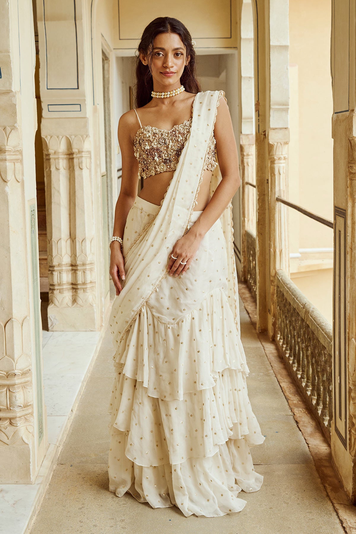 Fabric: Bralette- Shantoon, solid sequence Saree- Sequence organza