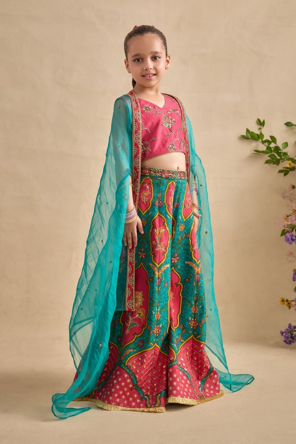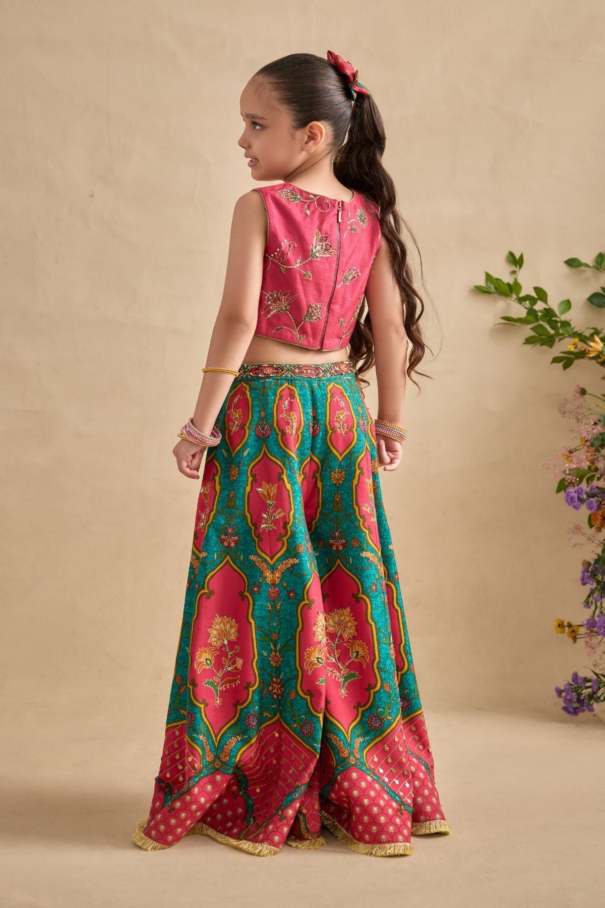 Elevate your little girl's wardrobe with this stunning Mehvish Sharara and top set.Perfect for your girl to turn heads and make a style statement.