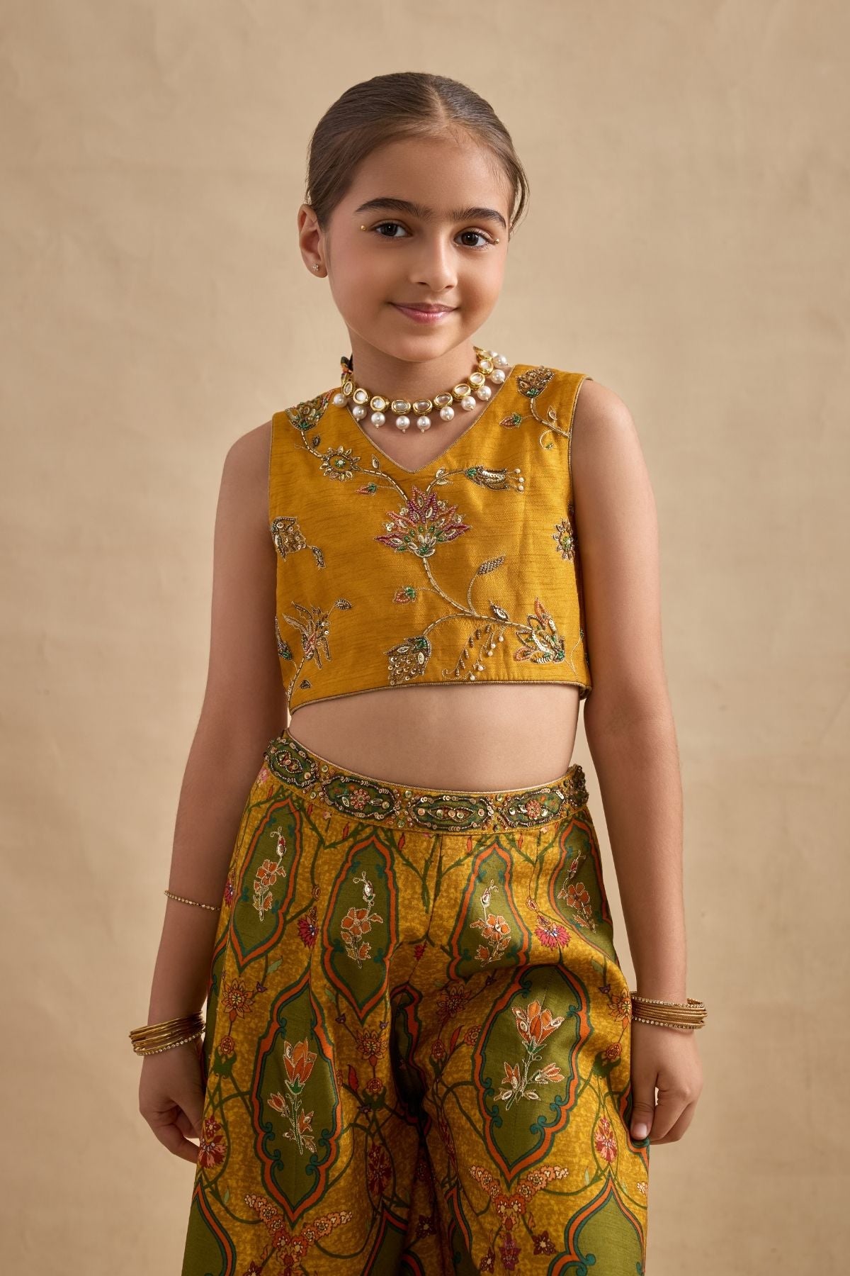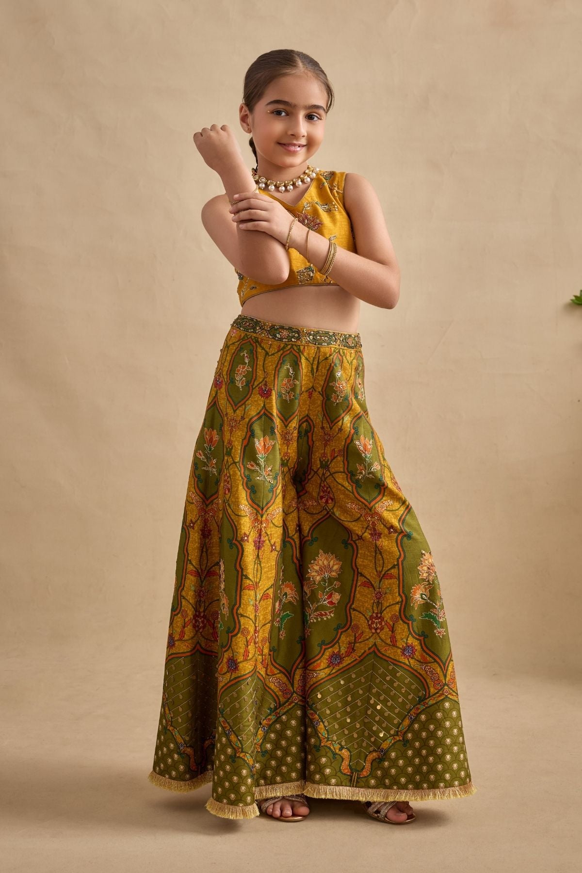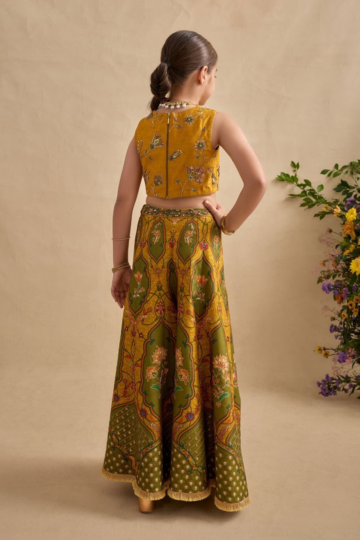 Adorn your sugarbun with our pretty Pavika lehenga set. Paired With A Meticulously Embroidered Blouse And Styled With A Co-Ordinated Dupatta. Perfect to carry on wedding occasions.