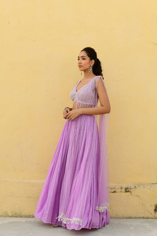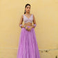 Silk blouse with sequence and beads embroidery lined with cotton. Georgette skirt lined with crepe.