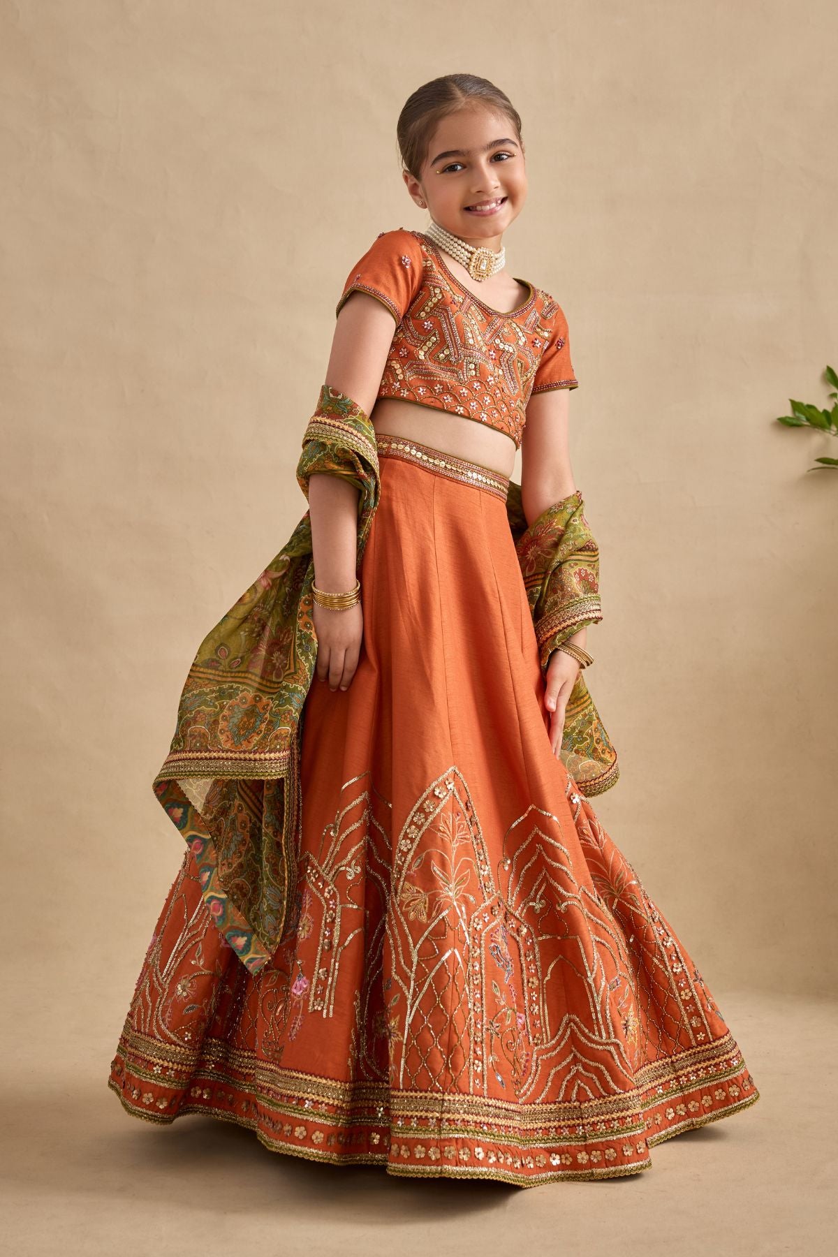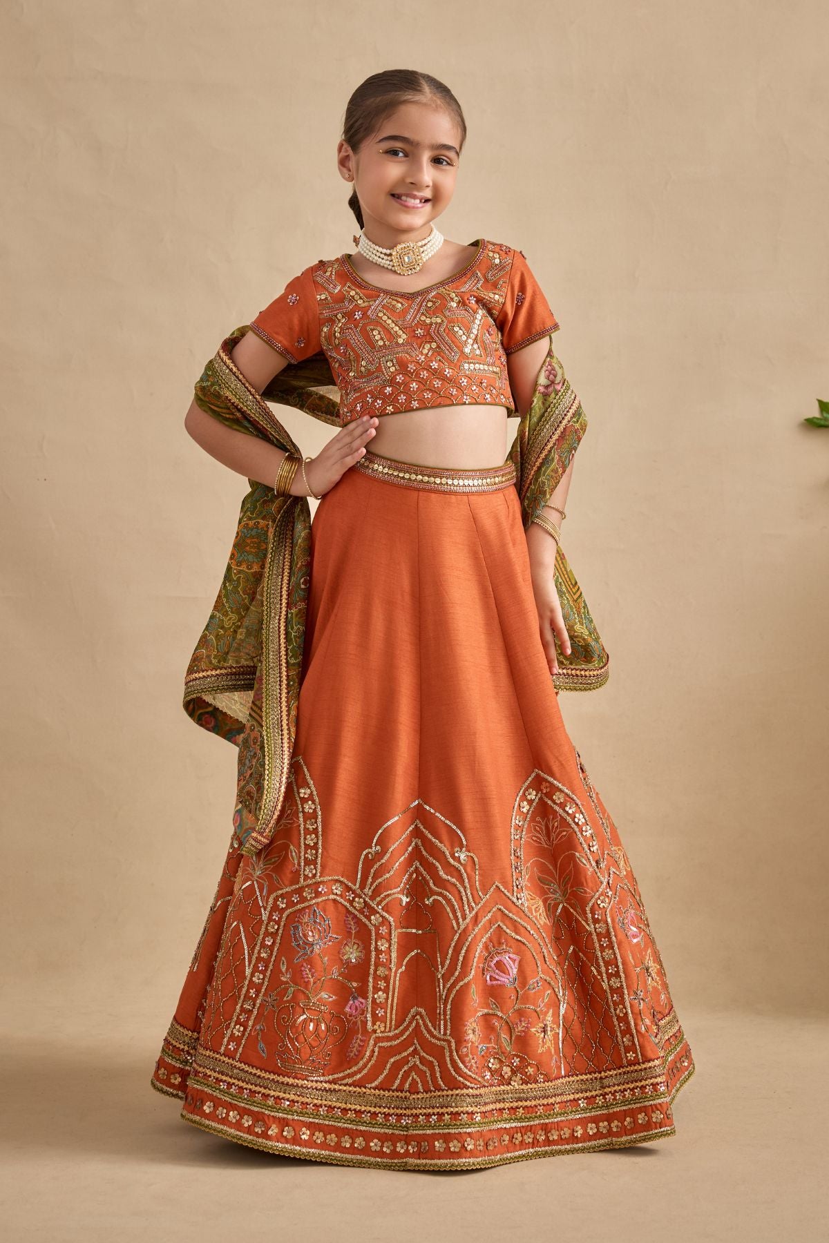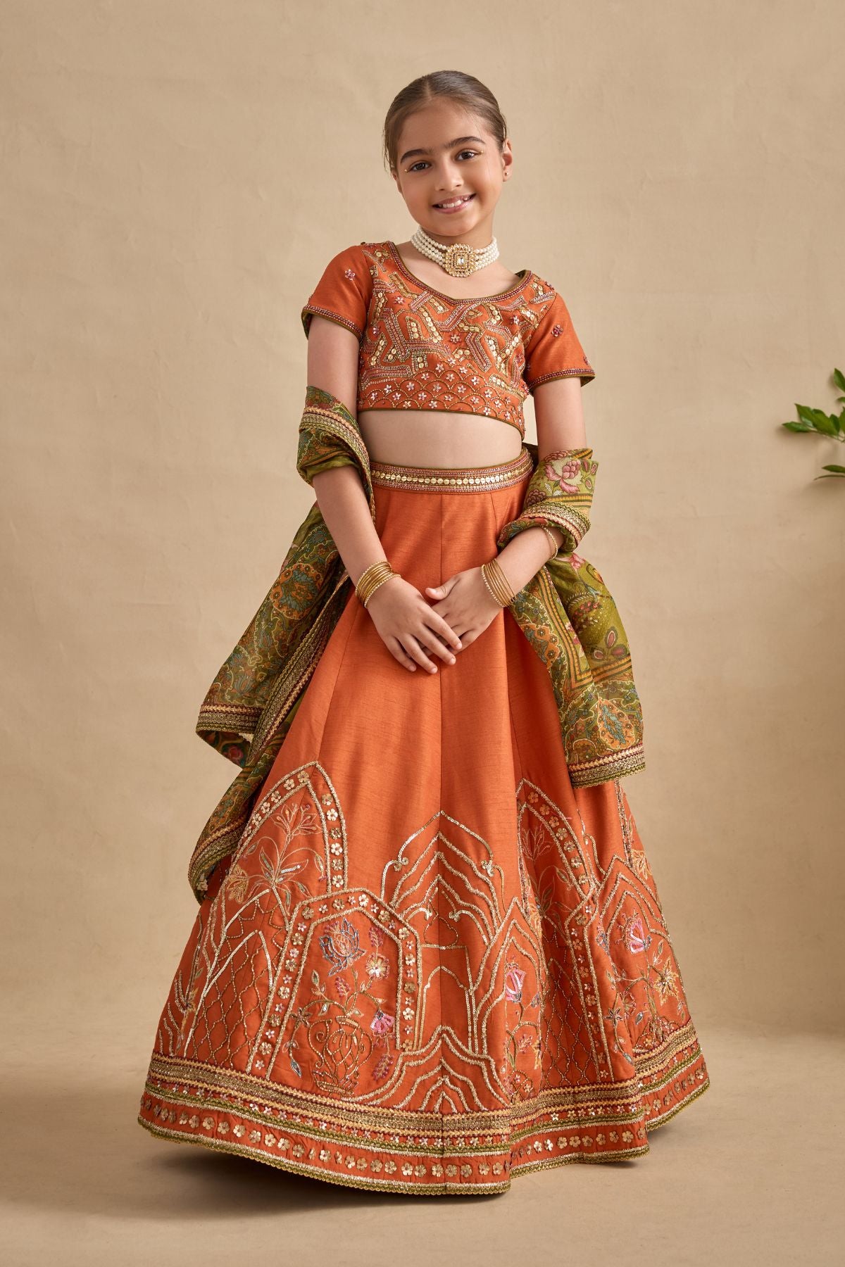 Colour: BLOUSE / SKIRT - TANGERINE DUPATTA- OLIVE