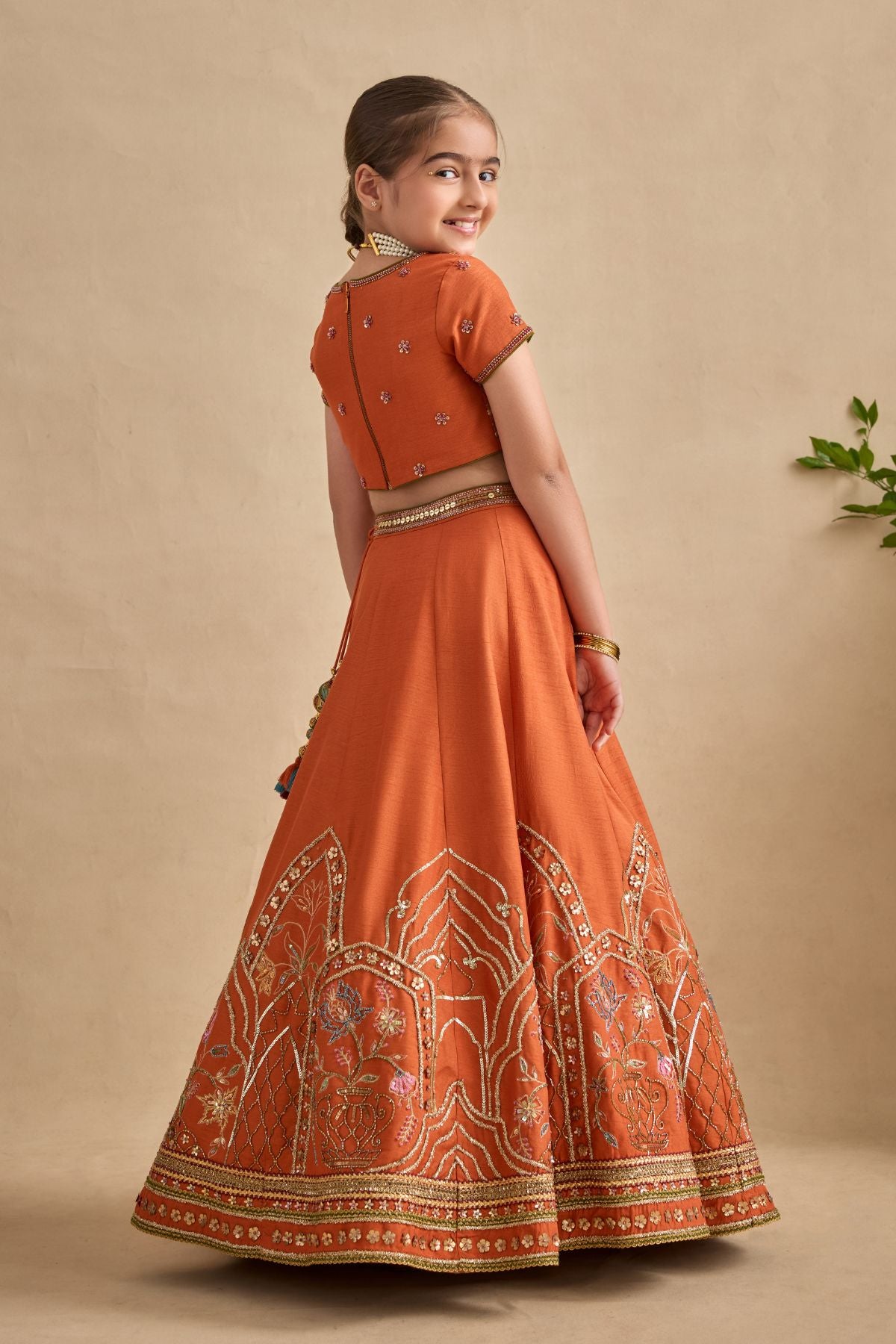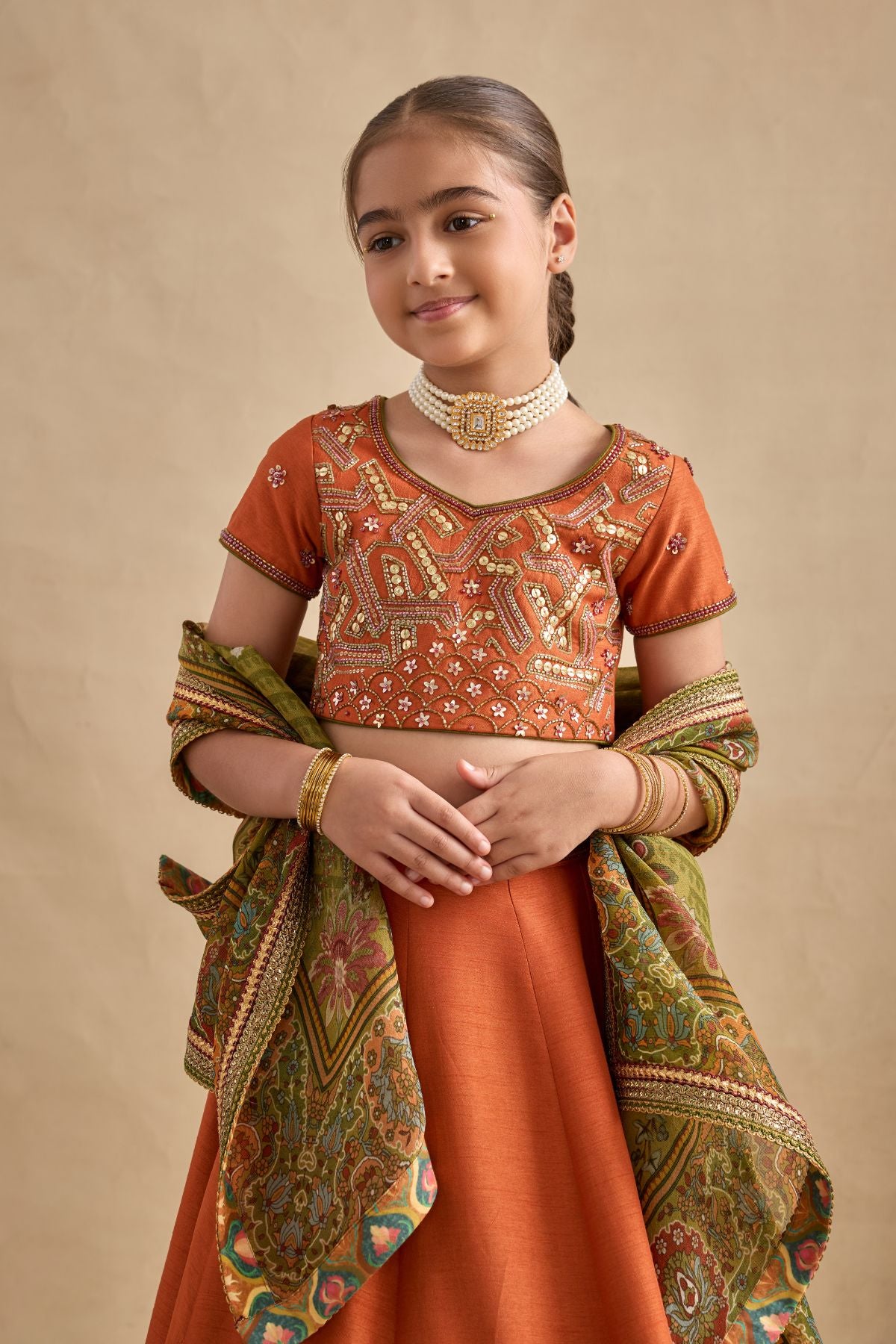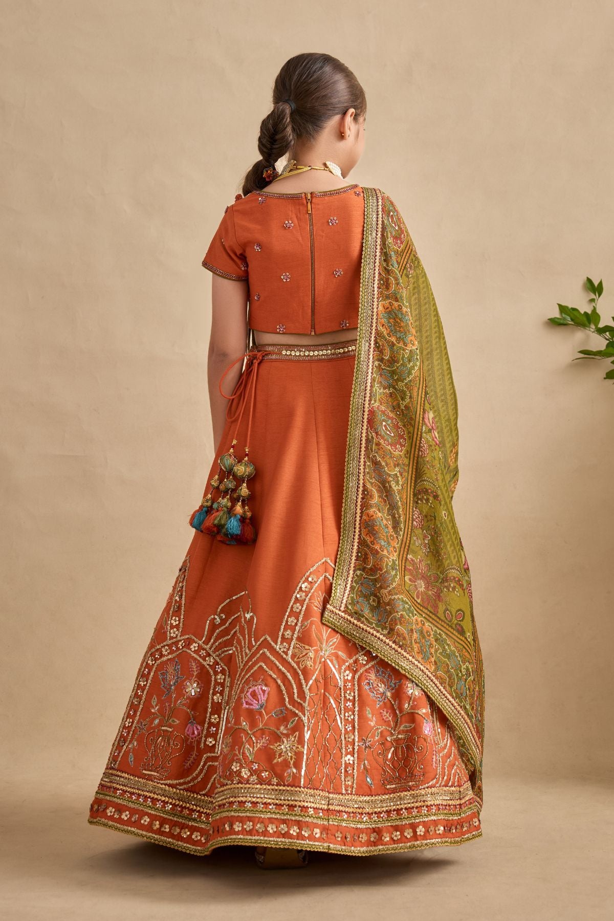 Colour: BLOUSE / SKIRT - TANGERINE DUPATTA- OLIVE