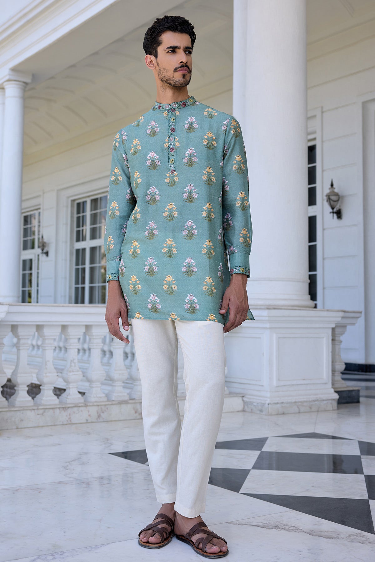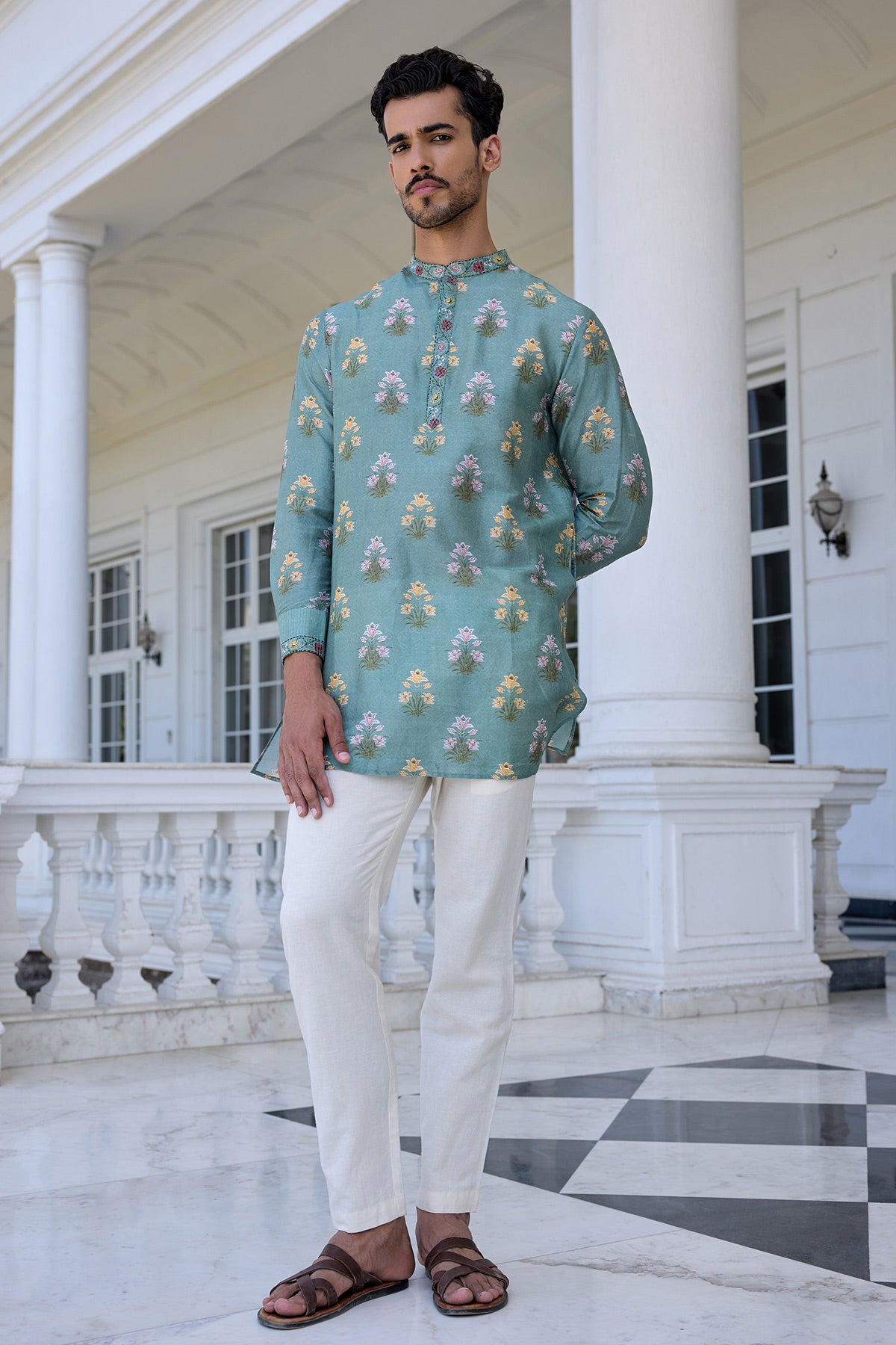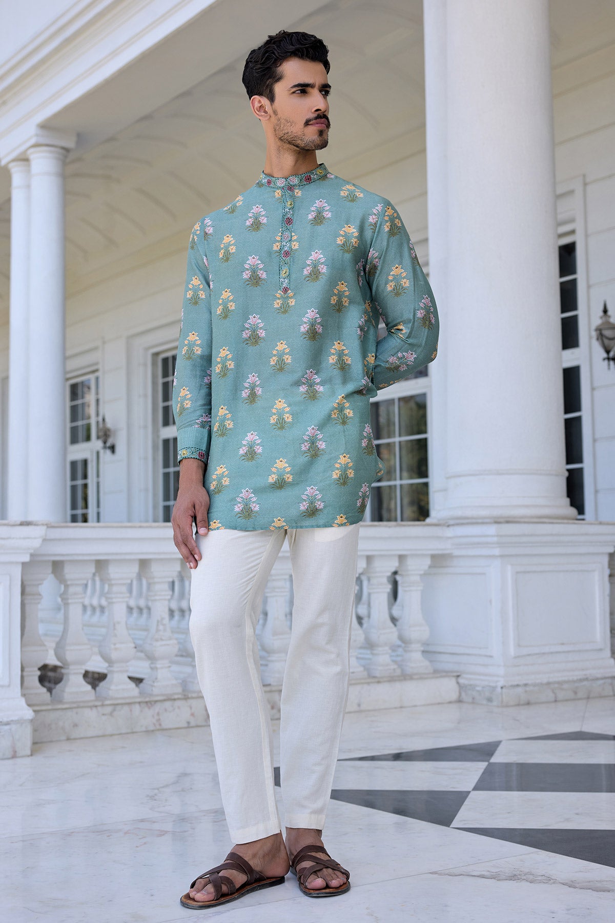 Indulge In Elegance With Our Classic Yasir Kurta Set, Featuring A Timeless Vintage Paisley Design All Over. Accentuated With An Embroidered Neckband And Placket, It’S The Perfect Ensemble For A Contemporary Indian Look.