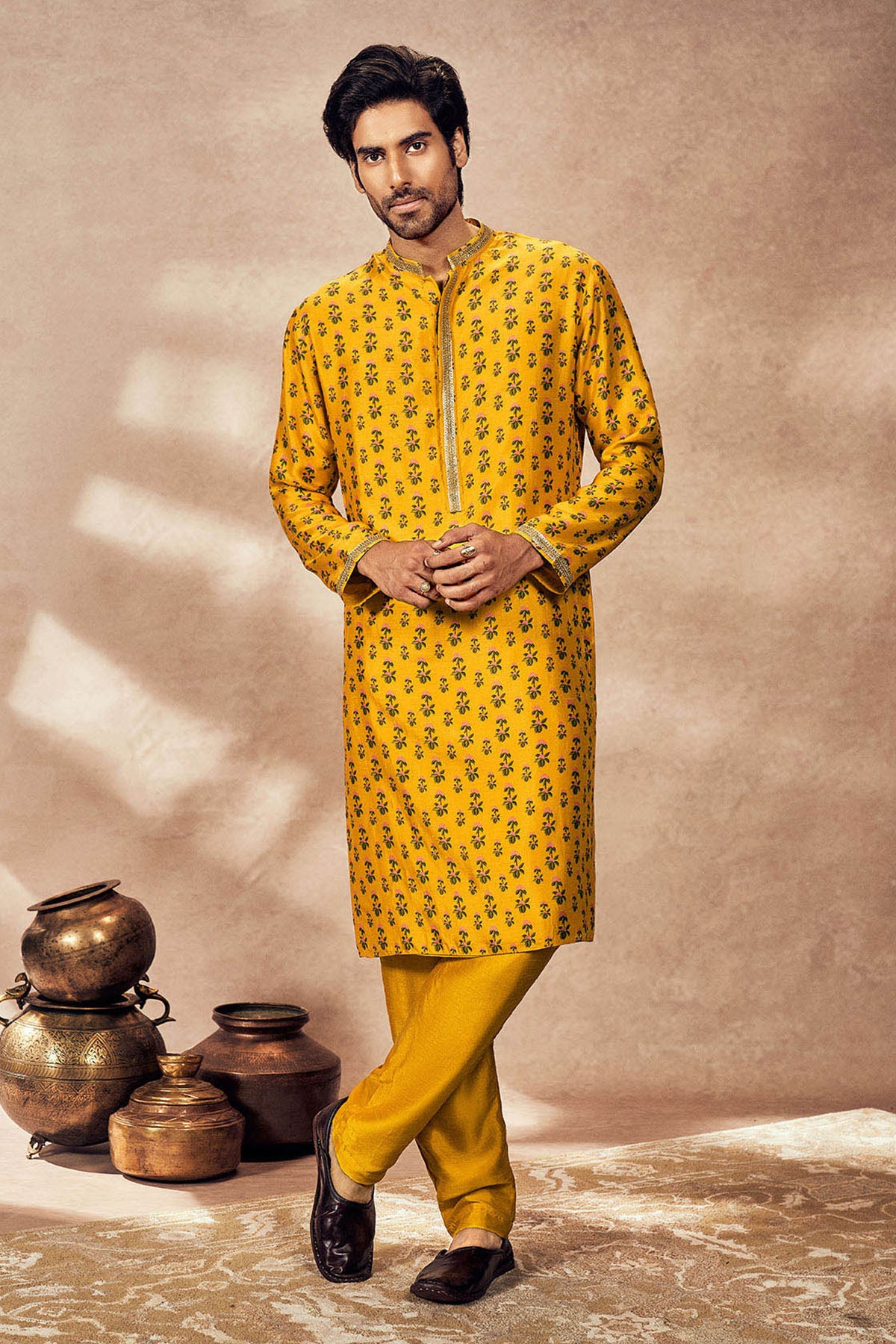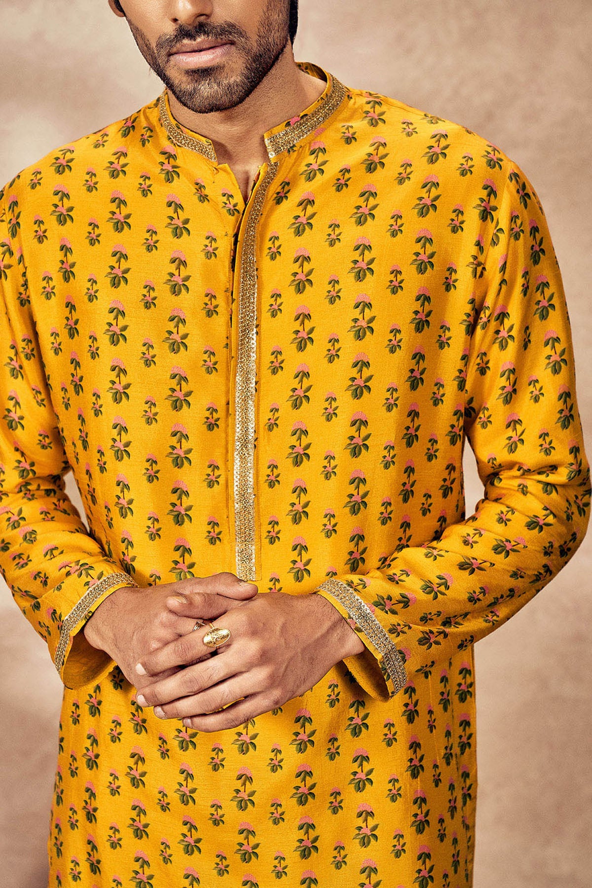 Kurta- All over digital printed kurta | Full sleeves |Mandarin collar embellished with border | Pocket detail | Concealed placket embellished with border