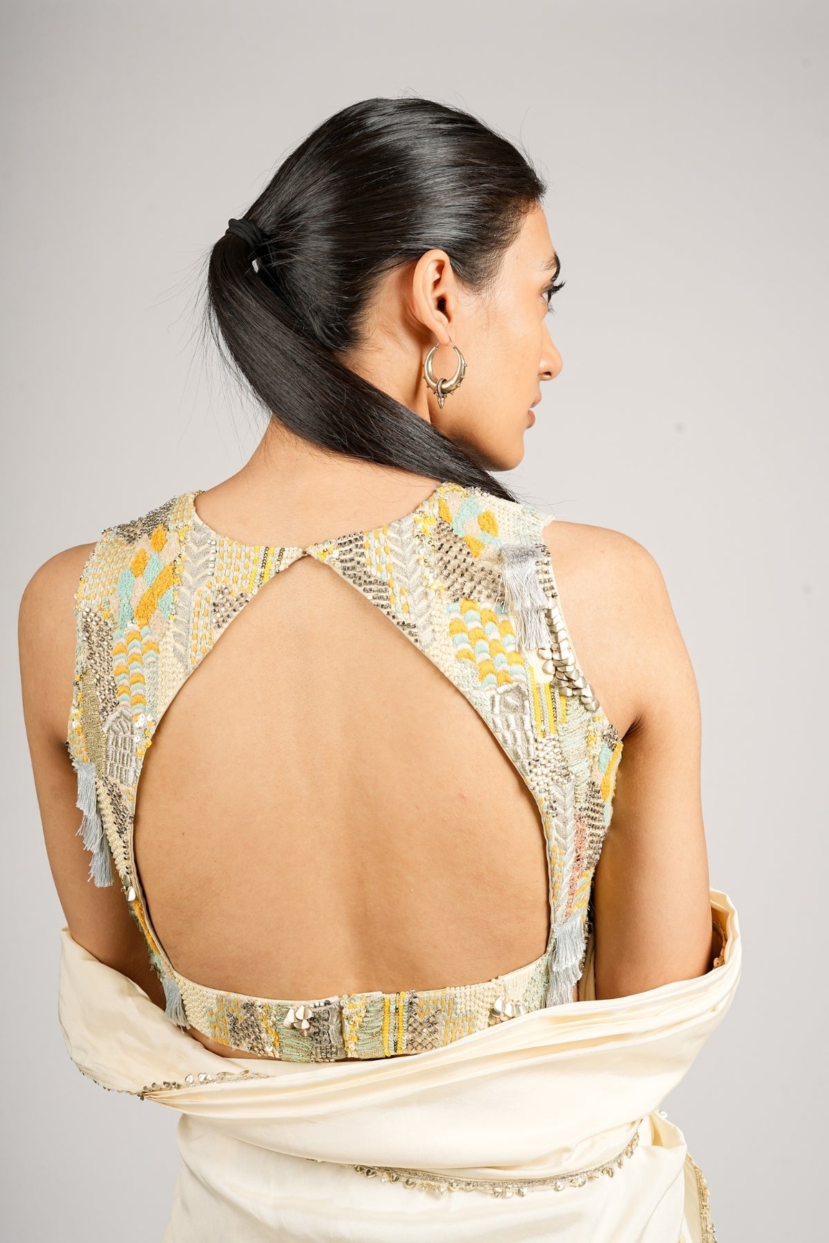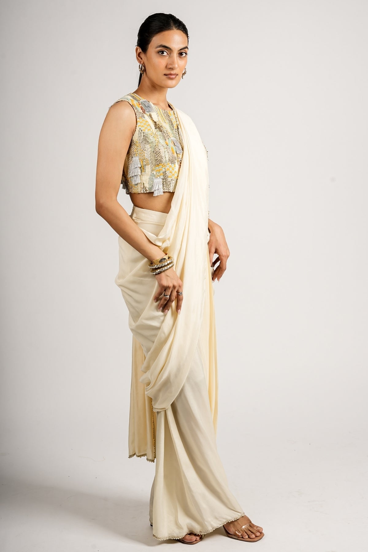 Iraya Abstract Embellished Blouse With Ivory Saree