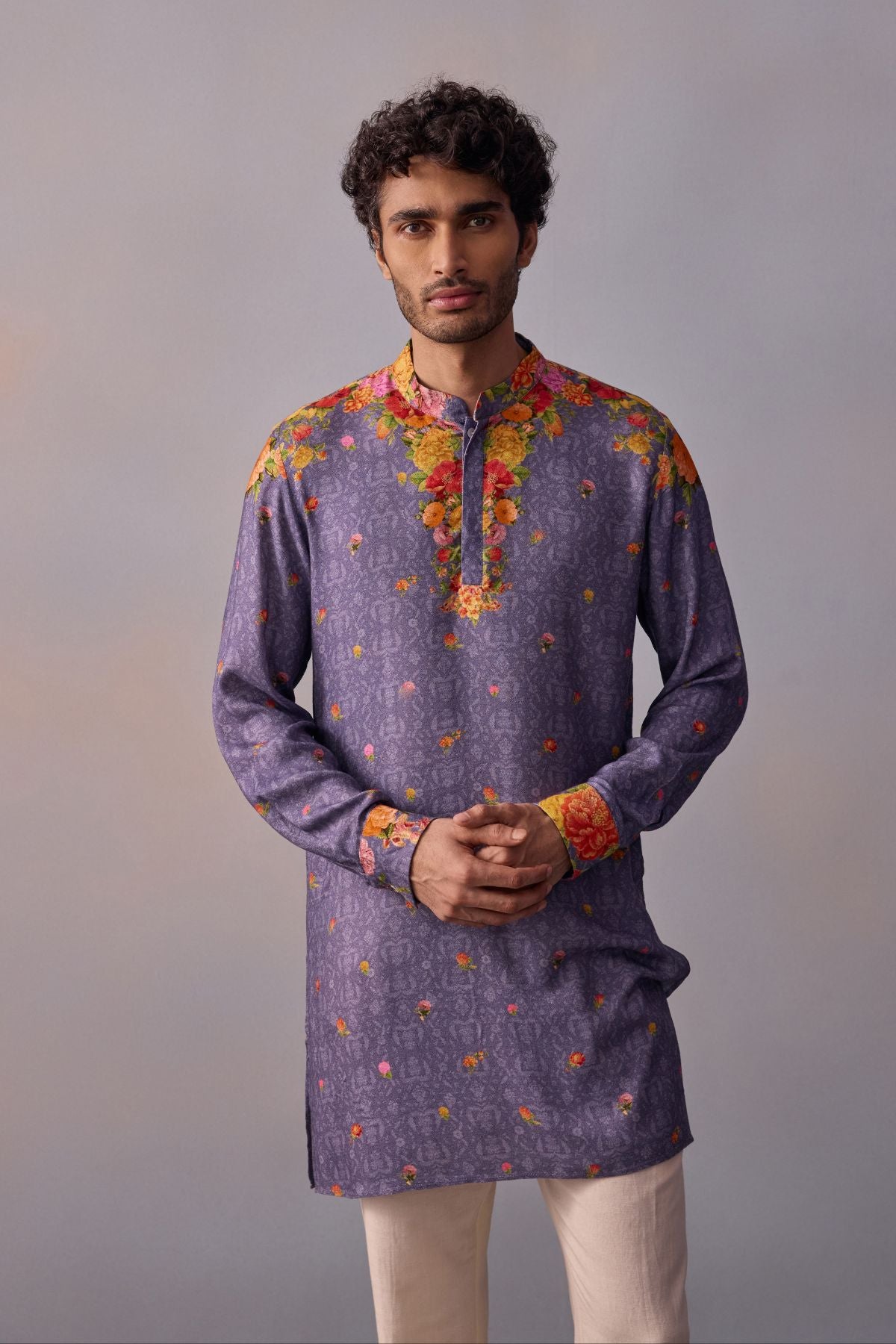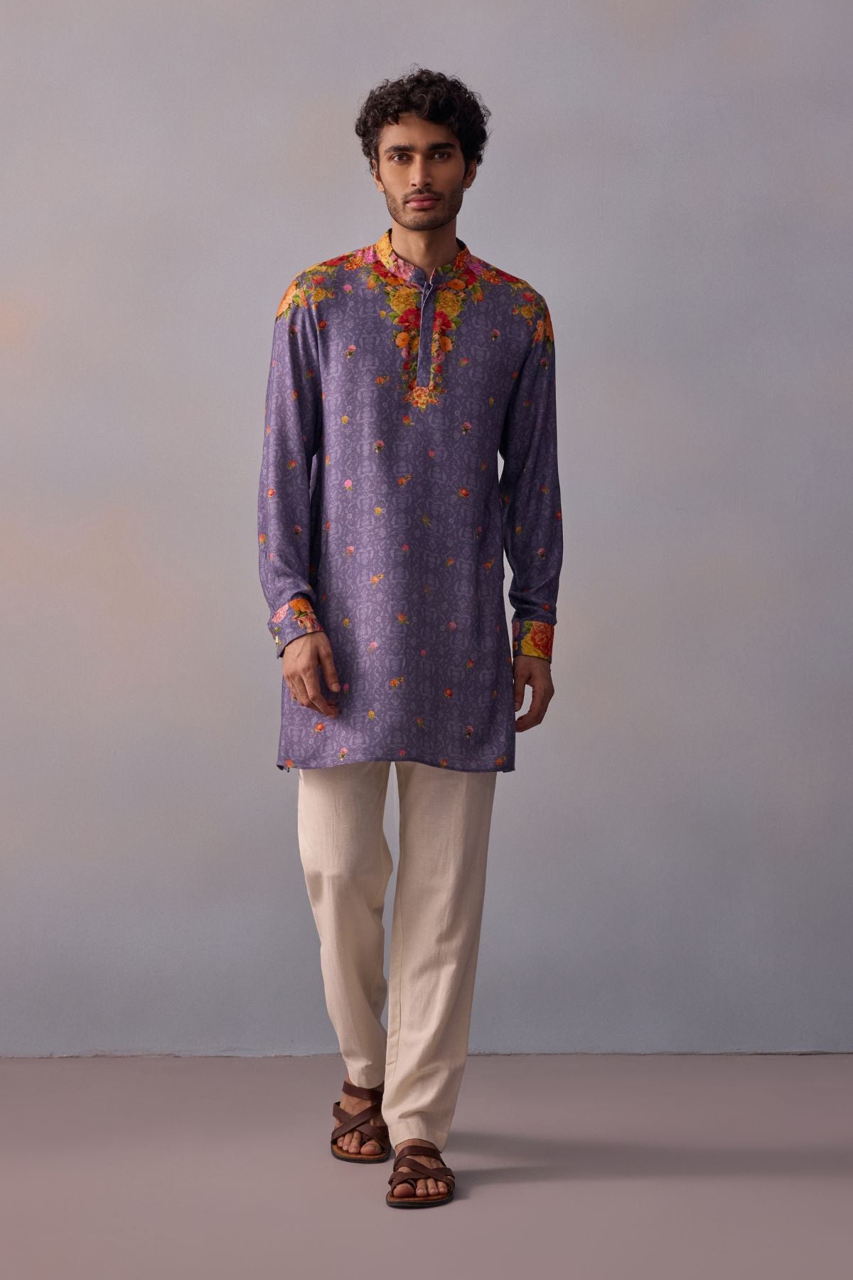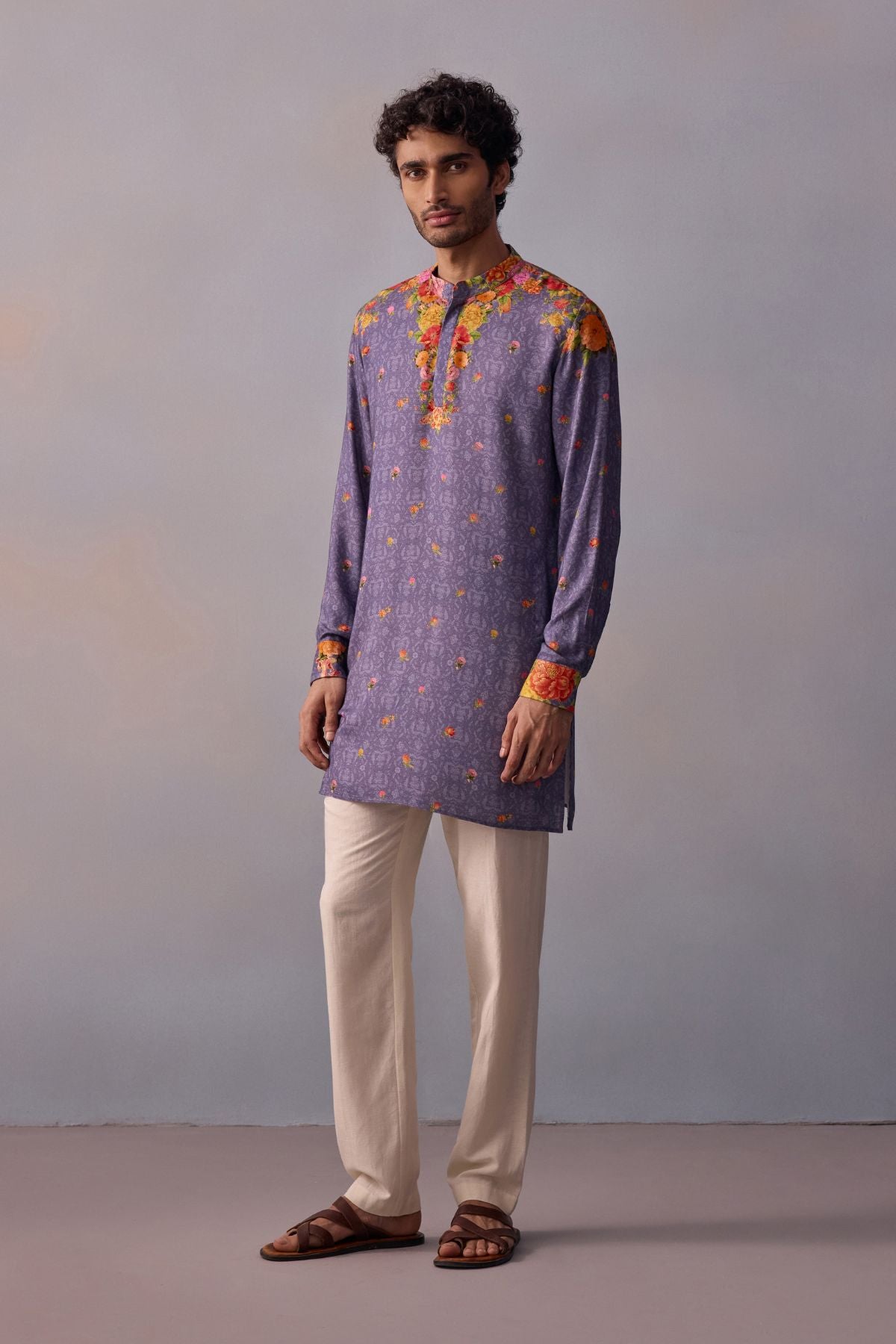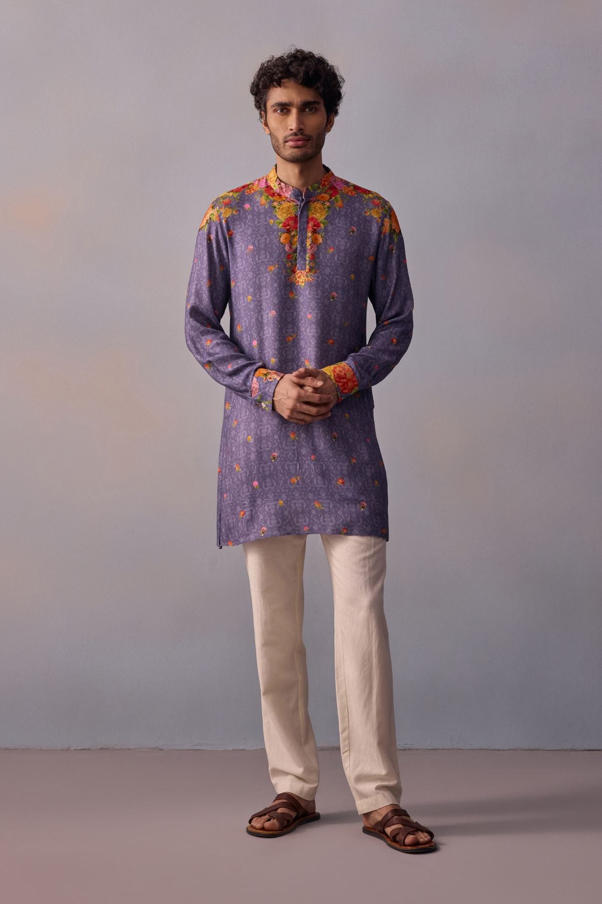 Indulge in elegance in our classic Zayn Kurta Set. Classic vintage floral design on shoulder ,neck and cuff for that contemporary Indian look.
