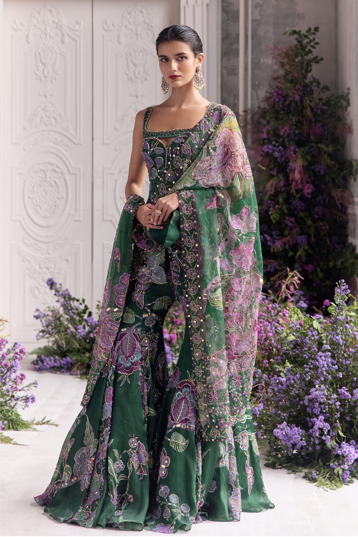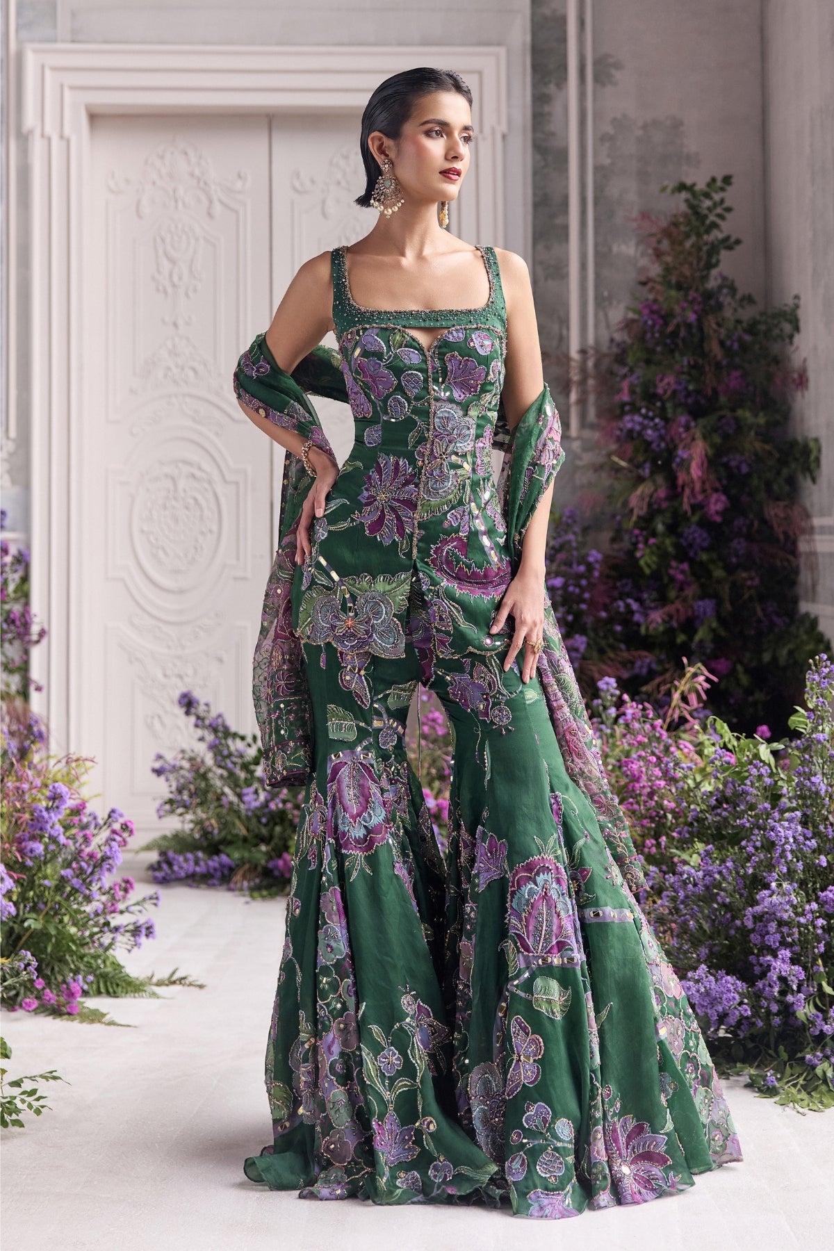 Heavy Hand Embroidered Short Kurta Paired With Embroidered Sharara And Dupatta